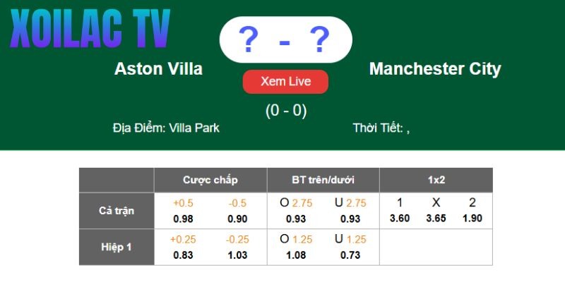 Bảng tỷ lệ kèo trận Aston Villa – Manchester City dưới đây sẽ mang đến cho bạn những góc nhìn chính xác nhất.