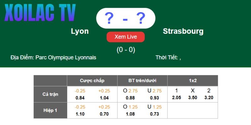 Bảng tỷ lệ kèo trận Olympique Lyonnais – Strasbourg